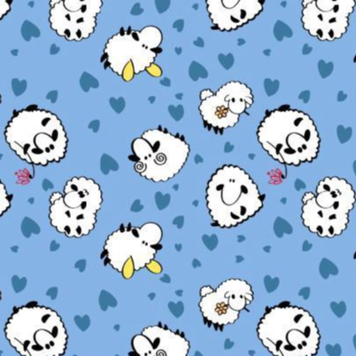 TECIDO CREPINHO CARNEIRINHOS FOFO INFANTIL FUNDO AZUL COM CORAÇÕES PARA CONFECÇÃO DE VESTIDOS, SAIAS, BLUSAS, ETC.