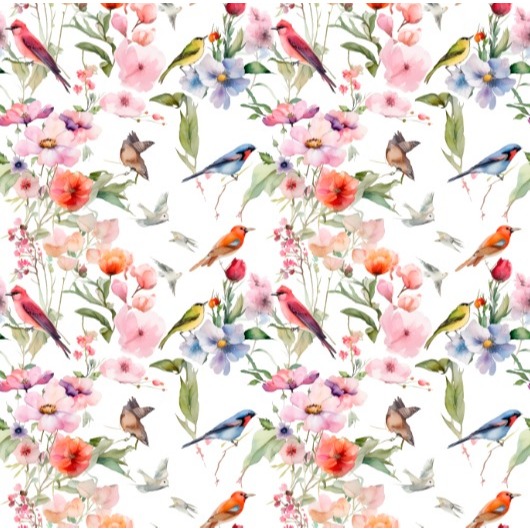 TECIDO FLUID PÁSSAROS NO JARDIM PRIMAVERA PARA CONFECÇÃO DE VESTIDOS, SAIAS, BLUSAS, ETC